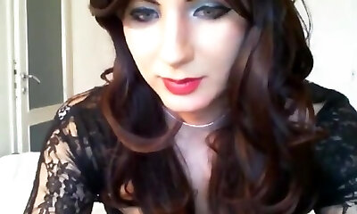 Crossdresser Bree显示我们她的令人兴奋的衣柜和中风